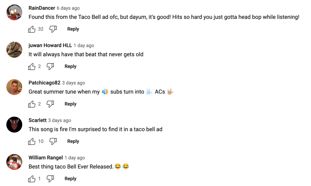 • That Taco Bell commercial has the worst song I’ve ever heard. According to YouTube it’s called “Let’s Eat Yuh Yuh”. This genre-less masterpiece defies categorization, and I’m not sure if it’s even in English. For context, I can decipher like 65% of a Playboi Carti song yet these lyrics stump me. But I’m just one man, and the NPCs in the comments seem to love it: